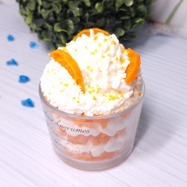 Notre Bougie gourmande Chaleur d'agrumes étant du fait main, la création peut varier légèrement. Produit non comestible.