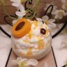 Bougie Gourmande de 300g : En cire d'olive, cette bougie gourmande est décorée d'une moitié d'abricot avec son noyau. Elle diffuse une fragrance intense et durable, créant une atmosphère chaleureuse.